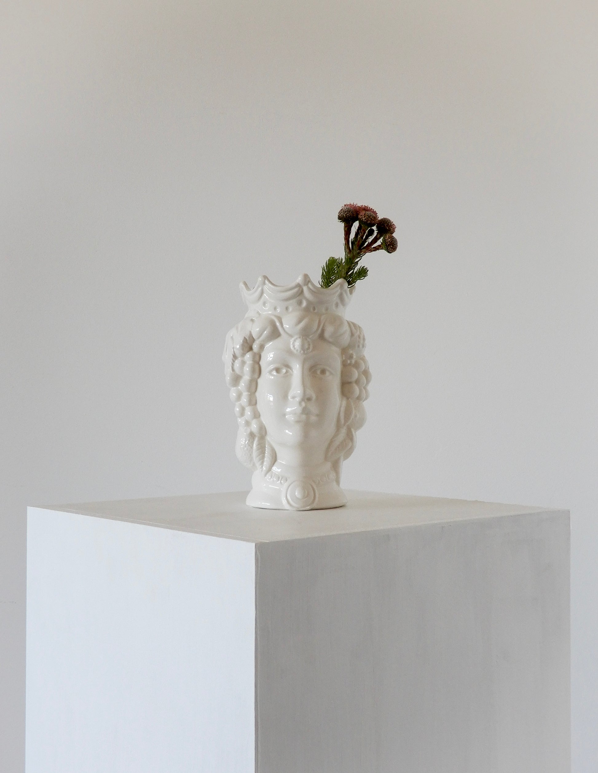 The Testa di Moro ("Moor's Head") is a Sicilian legend about a woman who falls in love with a Moorish man. After he leaves her, she is heartbroken, but when he returns, she kills him in revenge for his betrayal and decapitates him. She places his head in her garden, where it becomes a planter, symbolizing both love and revenge. The iconic ceramic heads, often used as decorative pieces, represent Sicily's mix of cultures, including the influence of the Moors.